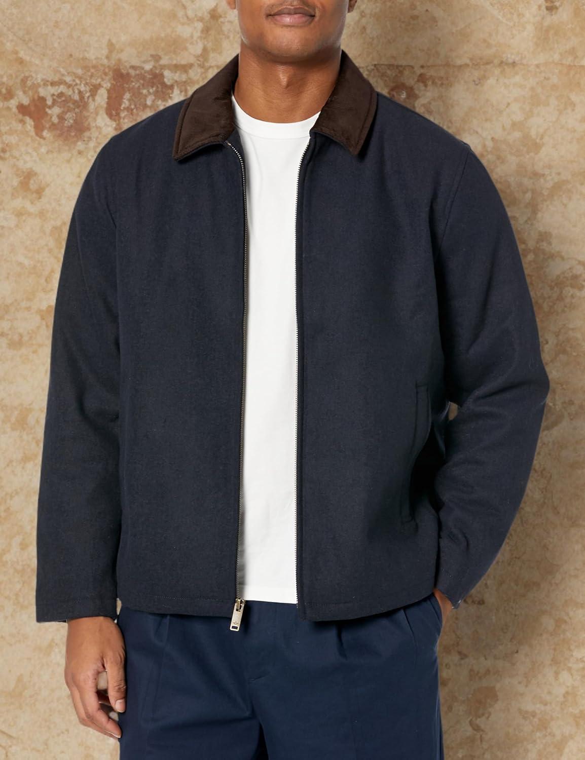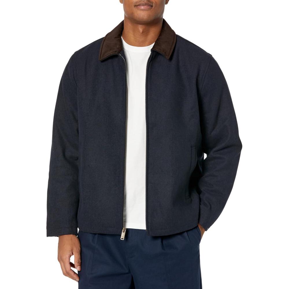 DOCKERS Men’s Wool Blend Zip Up Jacket with Quilted Bib(Navy (Without Bib))