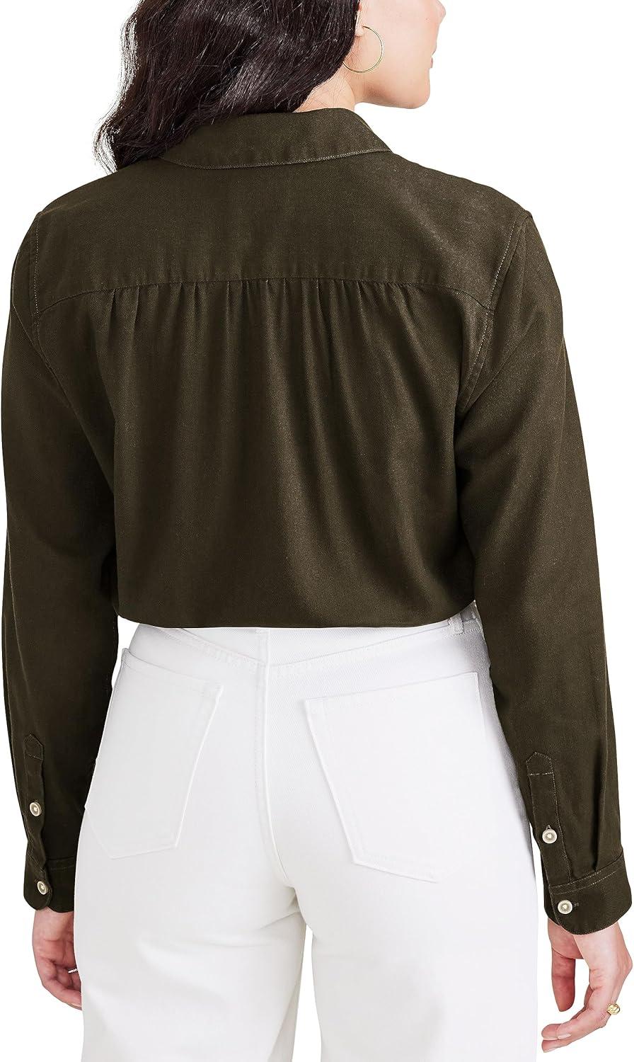 DOCKERS Womens Regular Favorite Long Sleeve Collared Shirt(Forest Night (Flannel))
