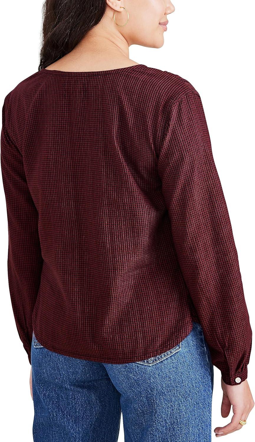 DOCKERS Womens Regular Fit Long Sleeve Flowy Blouse Shirt(Tibetan Red – Chorus Gingham (Twill))