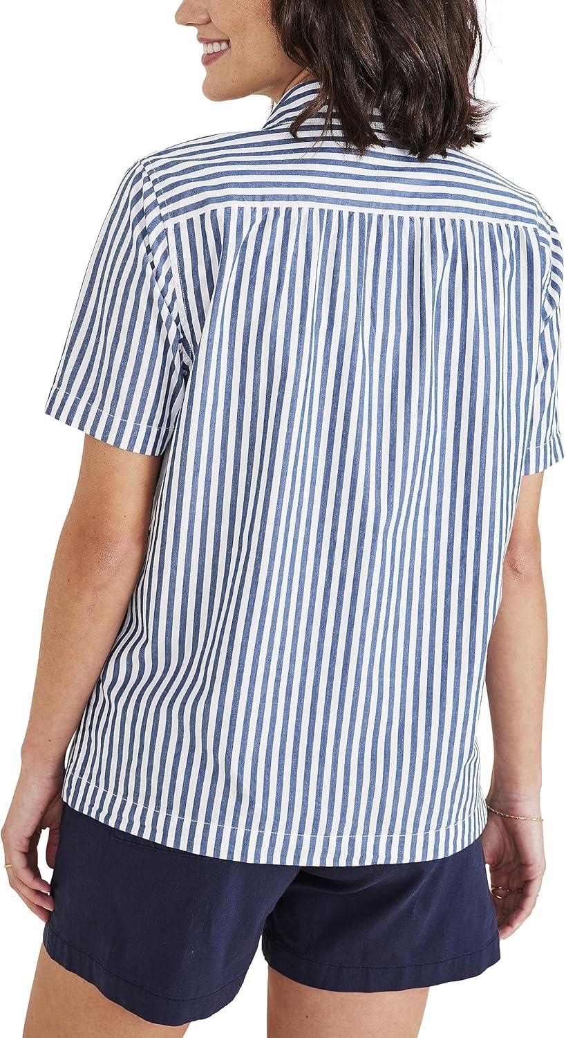 Dockers Womens Regular Fit Short Sleeve Button Down Shirt(Oceanview Blue – Carpinteria Stripe (Poplin))