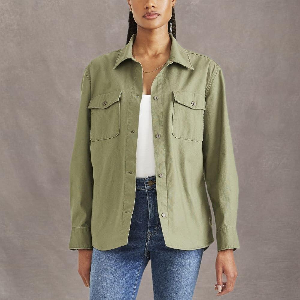 DOCKERS Womens Relaxed Fit Long Sleeve Shirt Jacket(Camo Green (Canvas))