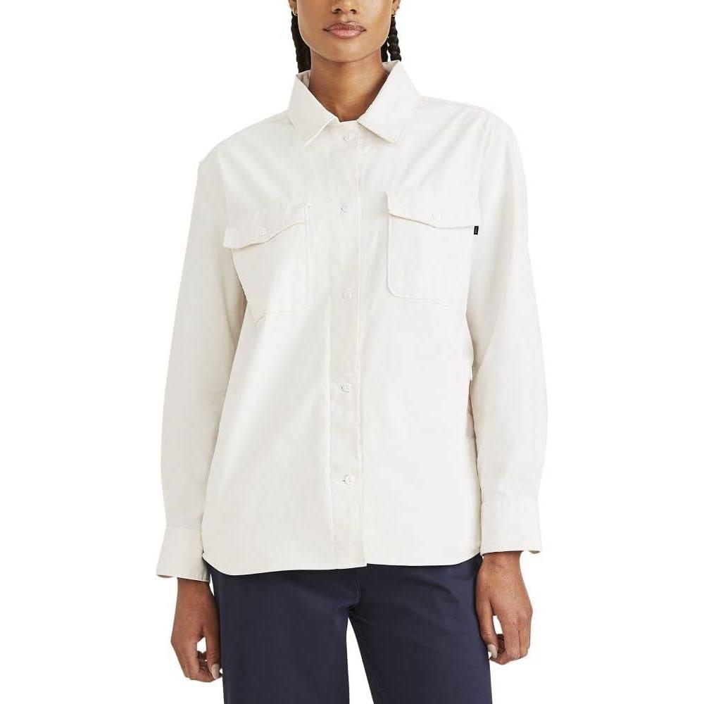 DOCKERS Womens Relaxed Fit Long Sleeve Shirt Jacket(Egret Cream (Canvas))
