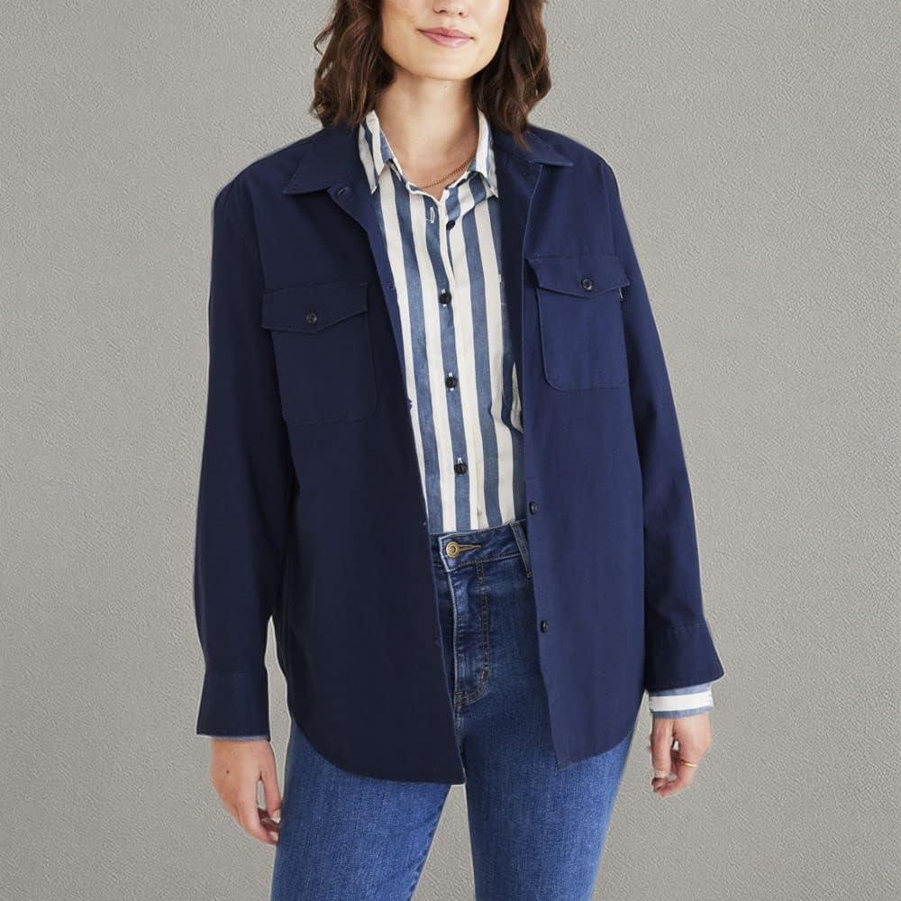 DOCKERS Womens Relaxed Fit Long Sleeve Shirt Jacket(Navy Blazer (Canvas))