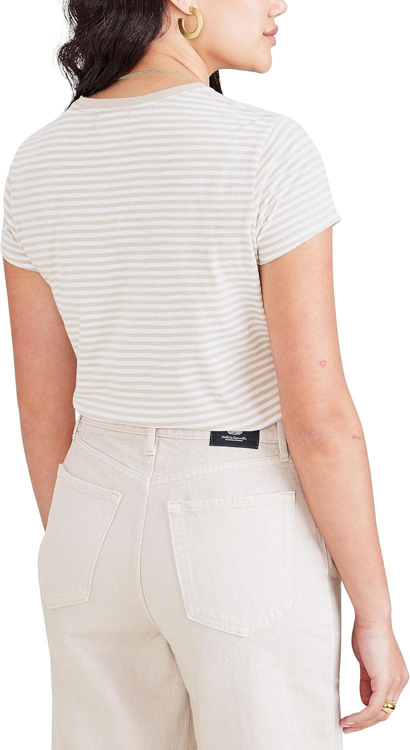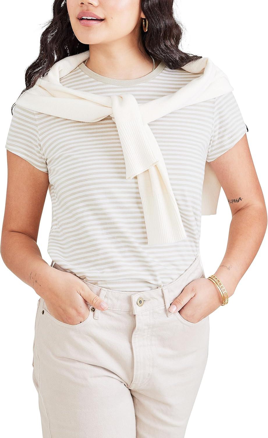 Dockers Women’s Slim Fit Cotton Slub Jersey Favorite Crew T-Shirt(Sahara Khaki Stripe)