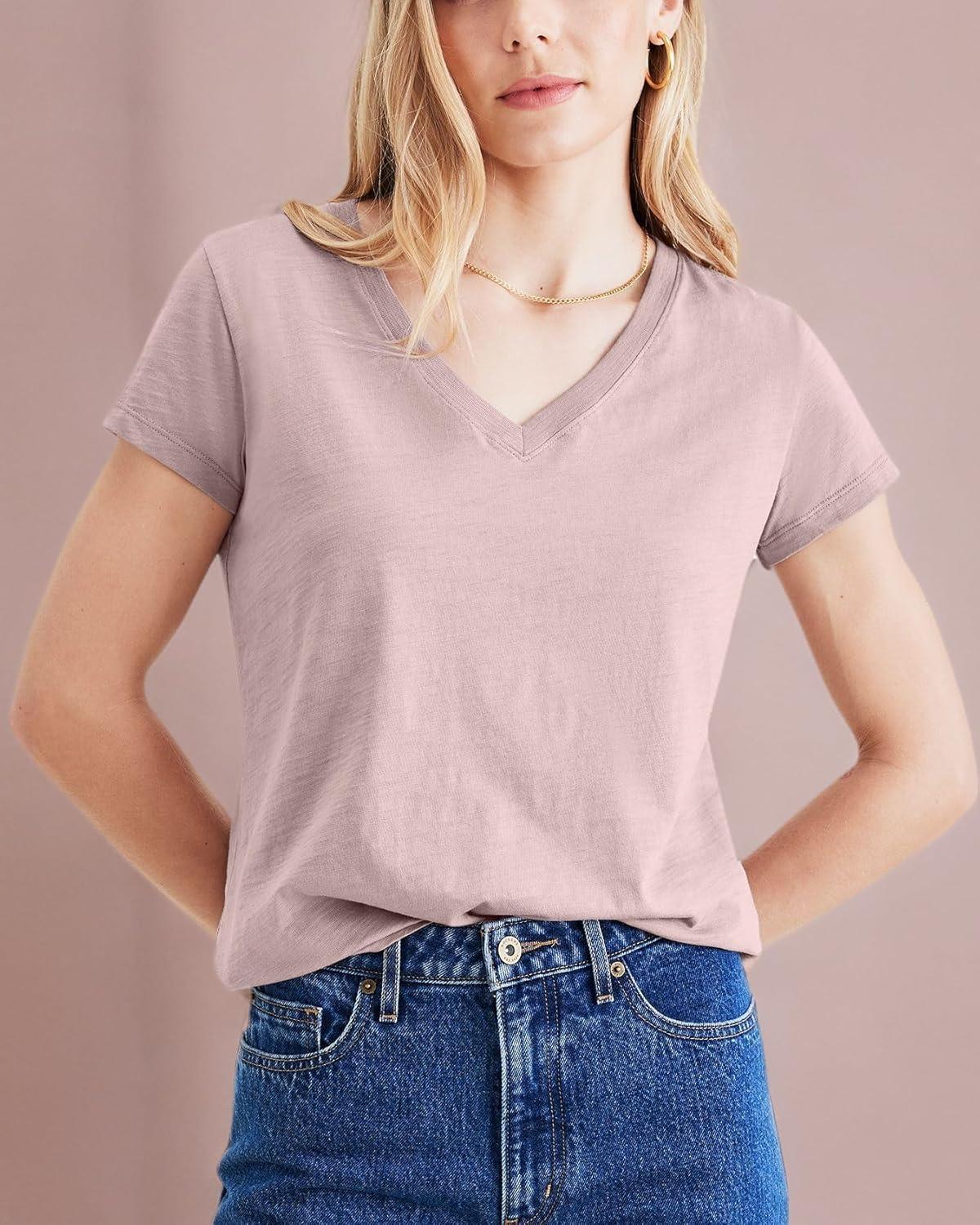 DOCKERS Womens Slim Fit Short Sleeve Favorite V-Neck Tee Shirt(Purple Dove)