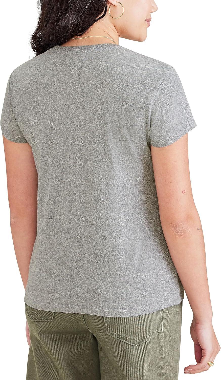 Dockers Women’s Slim Short Sleeve Graphic Tee Shirt(Heather Grey – Navy Blazer Dockers Script)